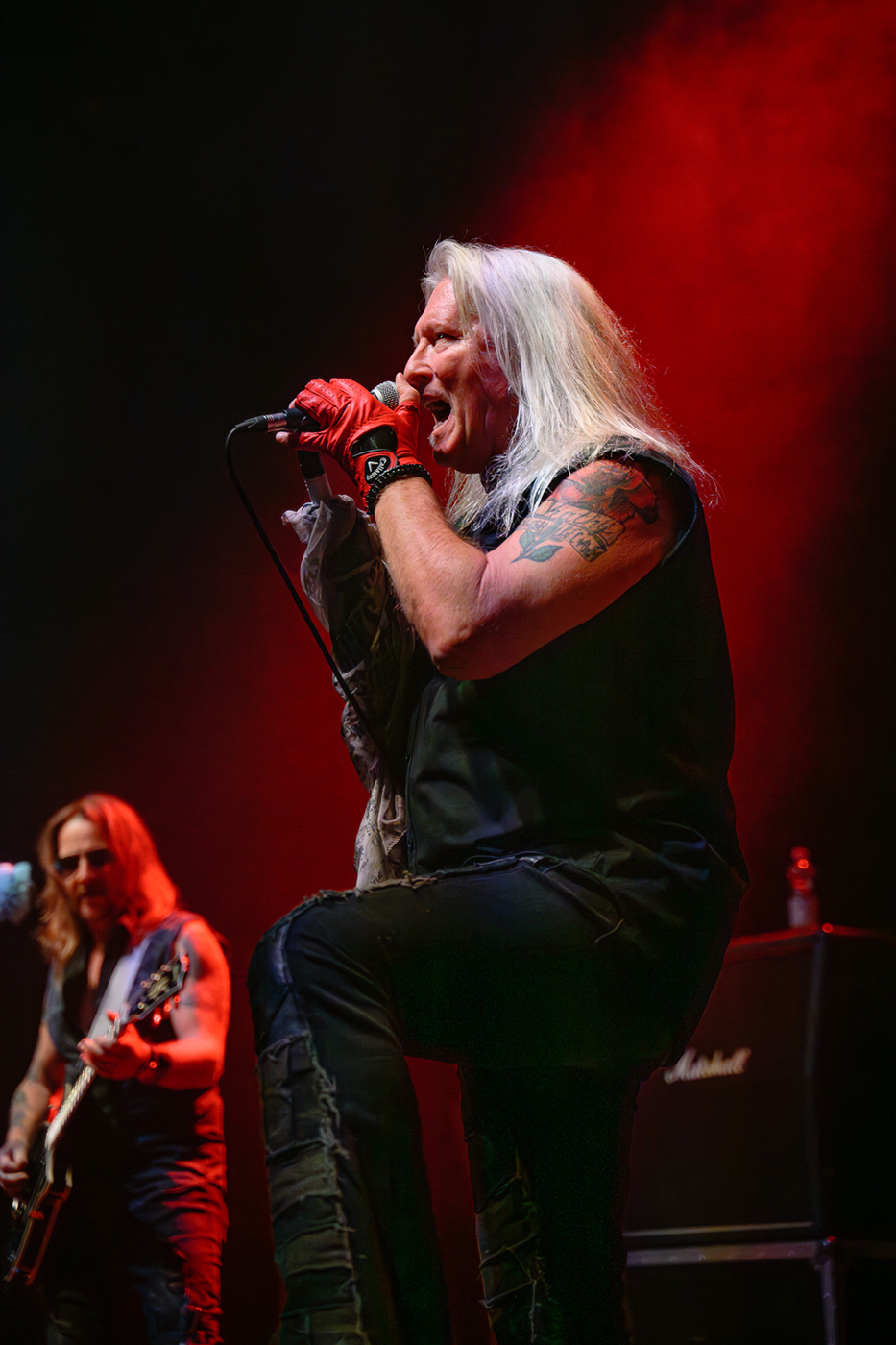 Gegen 21:00 Uhr war es soweit: Uriah Heep stürmten unter Jubel auf die Bühne. Im Zentrum stand Mick Box, das letzte Gründungsmitglied, dessen unerschütterliche Spielfreude und Humor das Publikum sofort in den Bann zogen. Trotz seiner 78 Jahre wirkte er frisch, konzentriert und charismatisch – der Inbegriff des britischen Rock-Geistes.