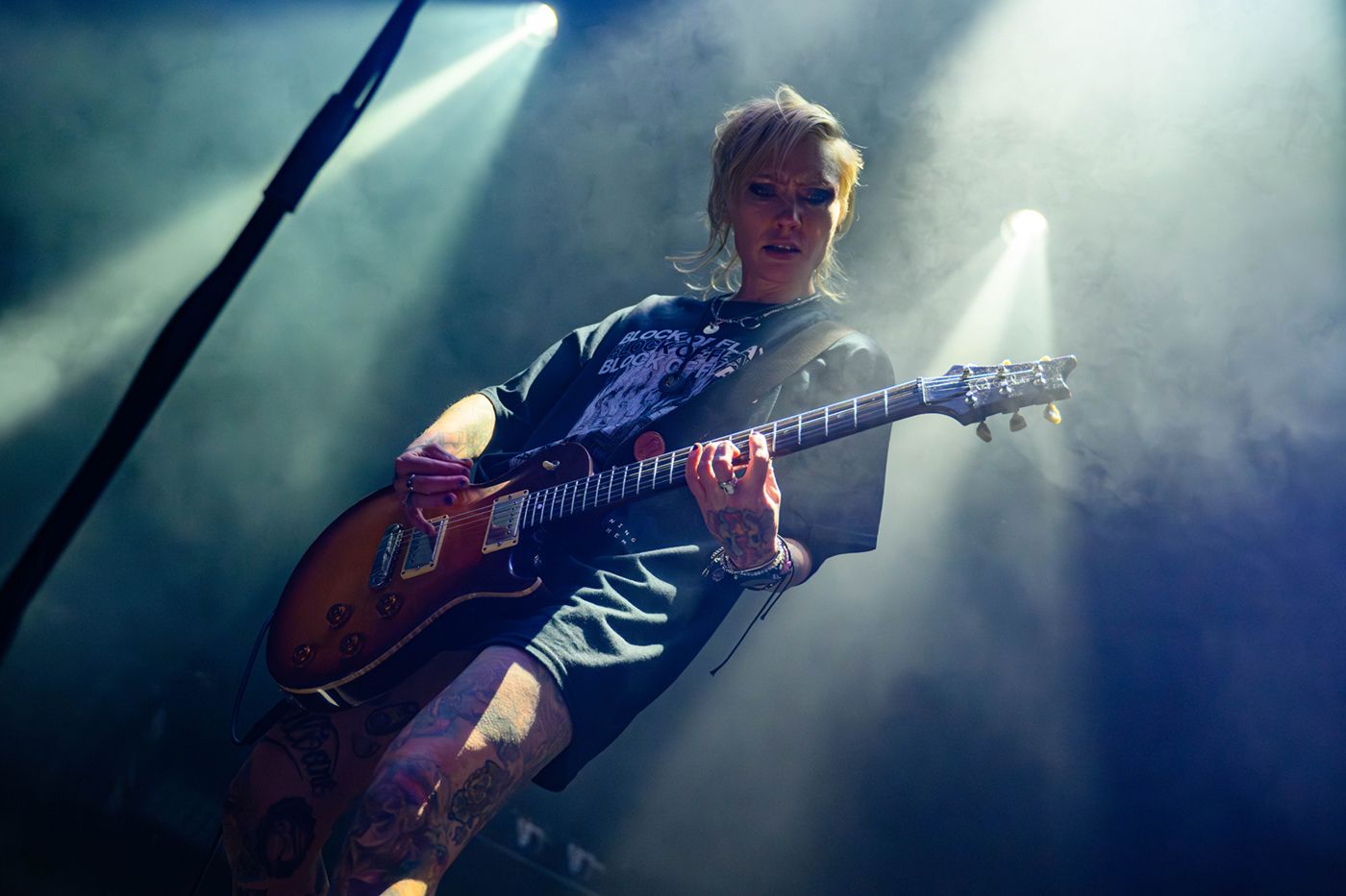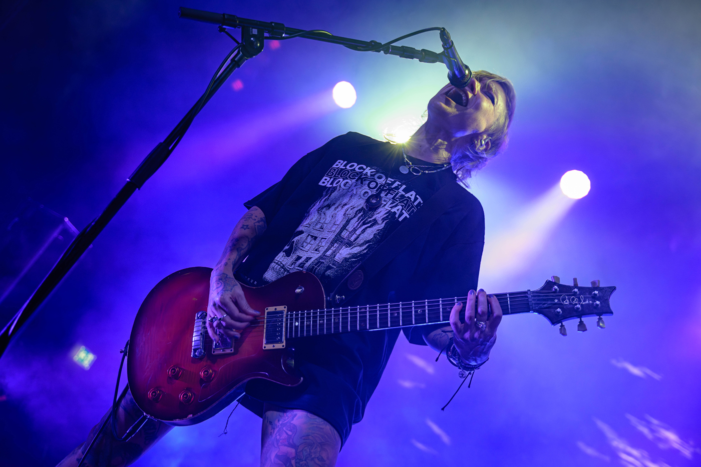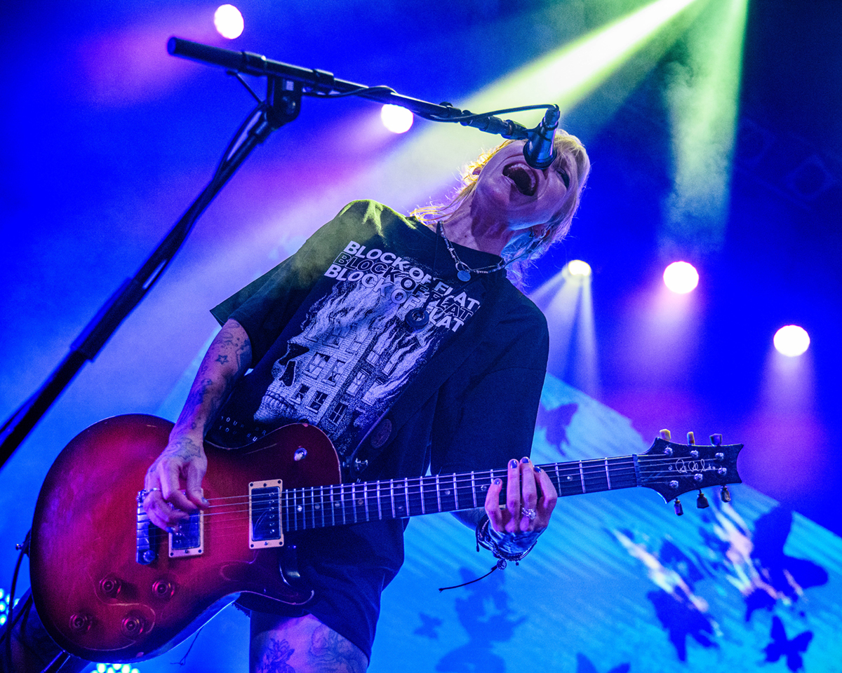 Erst einmal geht eine andere finnische Band an den Start. Als First-Opener auf dieser Tour gab es Block of Flats – eine Rockband aus Helsinki. Block of Flats gaben ihr Debut erst 2020. Sie legen von Beginn an eine überzeugende, mitreißende Performance hin. Ihr Sound ist ein wilder Mix aus metal-artigen Riffs und poppigen Melodien, teilweise auch mit Pop Punk-Charakter. Sänger Jonne Nikkilä überzeugt mit frischer Stimme und den Bandmitgliedern ist sichtlich anzusehen das sie Spaß auf der Bühne haben. Block of Flats bieten ein ordentliches Warm-Up Programm und wärmten nicht nur die Seelen der Menge auf.