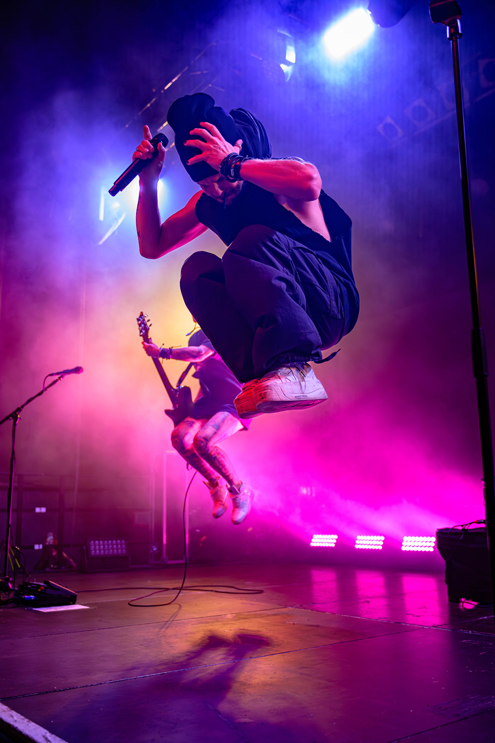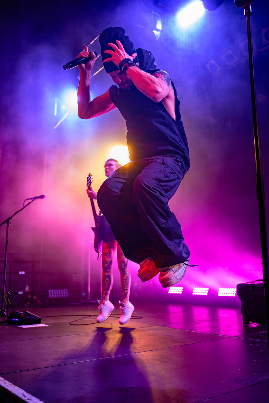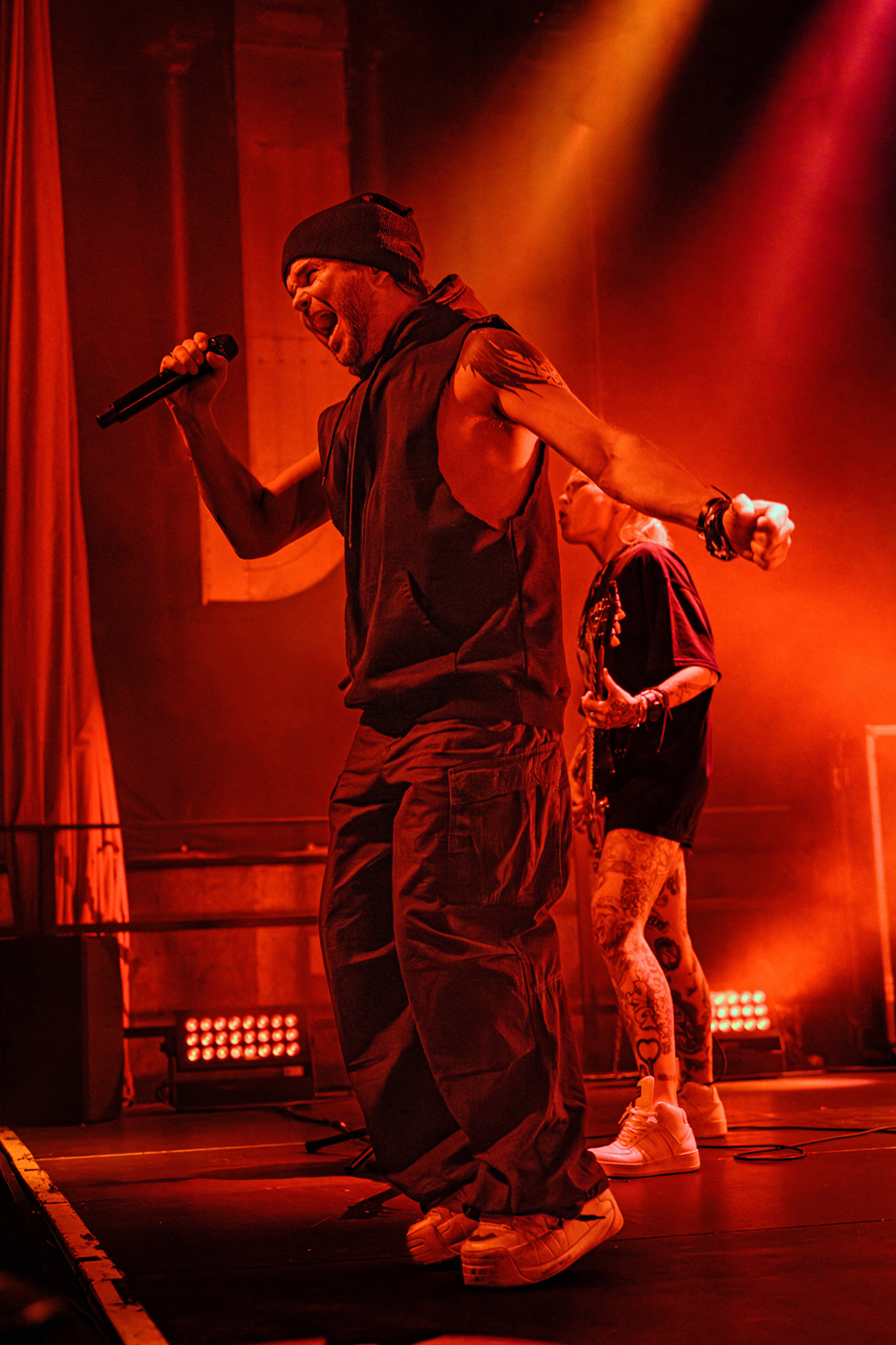 Erst einmal geht eine andere finnische Band an den Start. Als First-Opener auf dieser Tour gab es Block of Flats – eine Rockband aus Helsinki. Block of Flats gaben ihr Debut erst 2020. Sie legen von Beginn an eine überzeugende, mitreißende Performance hin. Ihr Sound ist ein wilder Mix aus metal-artigen Riffs und poppigen Melodien, teilweise auch mit Pop Punk-Charakter. Sänger Jonne Nikkilä überzeugt mit frischer Stimme und den Bandmitgliedern ist sichtlich anzusehen das sie Spaß auf der Bühne haben. Block of Flats bieten ein ordentliches Warm-Up Programm und wärmten nicht nur die Seelen der Menge auf.
