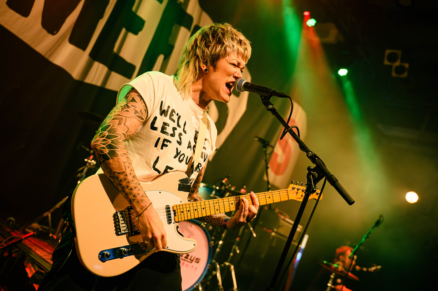 Obwohl wir den ersten Support-Act verpasst haben, wurden wir von der Follow-up-Band The Meffs nicht enttäuscht. Sie hielten eine Punk Session vom Allerfeinsten ab. Das Punk-Duo aus Essex war ein exelenter Anheizer. Sie lieferten eine knallharte und direkte Performance ab. Sängerin und Gitarristin Lily Hopkins und Drummerin Lewis Copsey gaben sofort Vollgas. Ihre kratzigen Riffs und der aggressive, schnelle Beat rissen die Fans direkt mit. Gelegentlich schwärmten sie darüber in Deutschland spielen zu dürfen und The Subways zu unterstützen. Das Publikum musste erstmal durchatmen nach dieser Show.