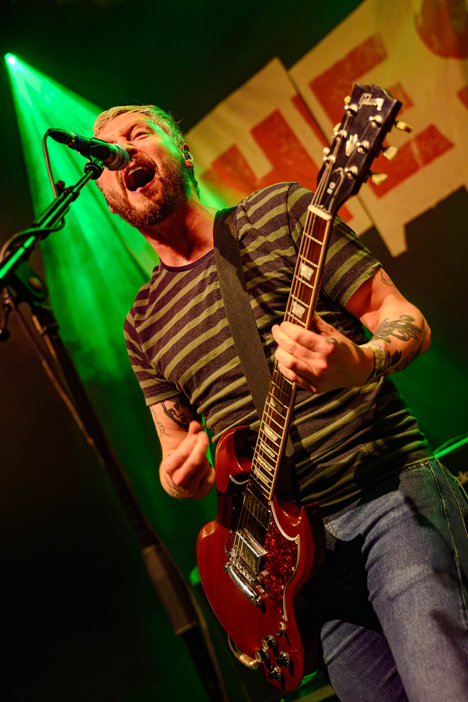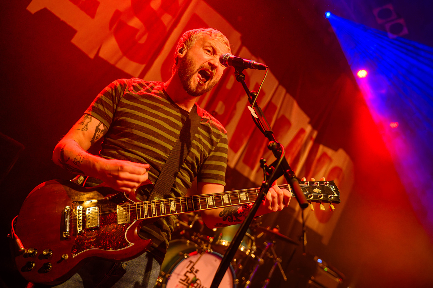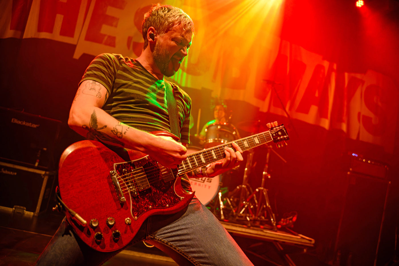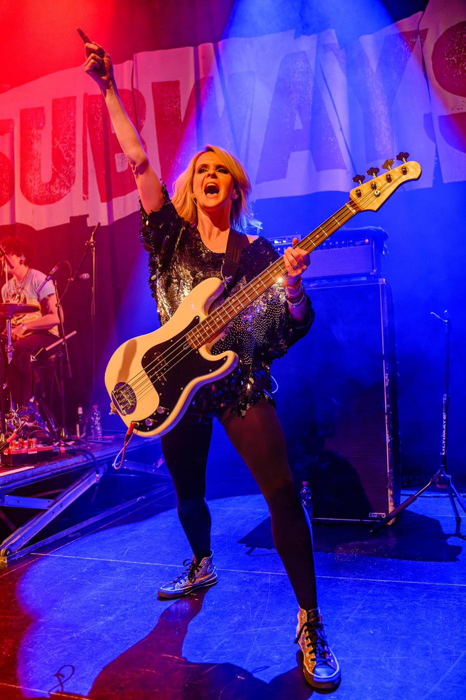 Das Trio bestehend aus Billy Lunn (Gitarre, Gesang), Charlotte Cooper (Bass) und Schlagzeugerin Camille Phillips legten mit Volldampf los. Charlotte Cooper wirbelte pausenlos über die Bühne, es schien als sei Ihre Energie ist beinahe unerschöpflich. Billy Lunn zeigte sich in bester Spiellaune, er genoss die Begeisterung der Fans sichtlich. Camille Phillips war deutlich anzusehen das Sie es sichtlich genoß dem Publikum einzuheizen.