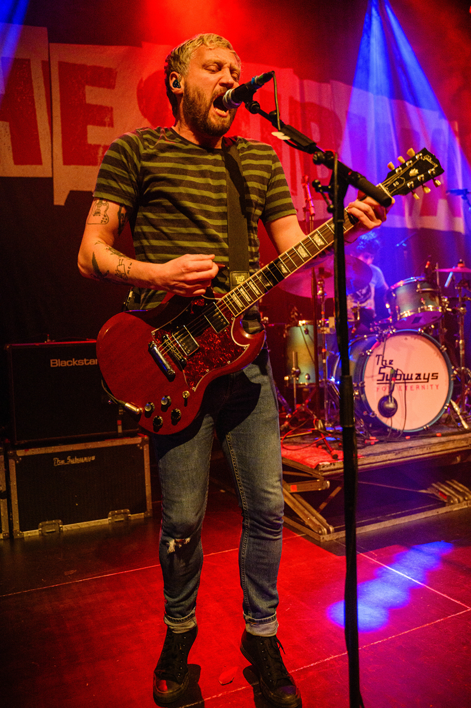 An diesem Dienstag Abend war das Bürgerhaus Stollwerk ausverkauft. The Subways waren definitiv gekommen um zu bleiben. Obwohl sie 2002 gegründet wurden, erlebte die Gruppe mit ihrem Debütalbum erst 2005 mit Young For Eternity ihre größten Erfolge mit Songs wie Rock & Roll Queen und Oh Yeah.