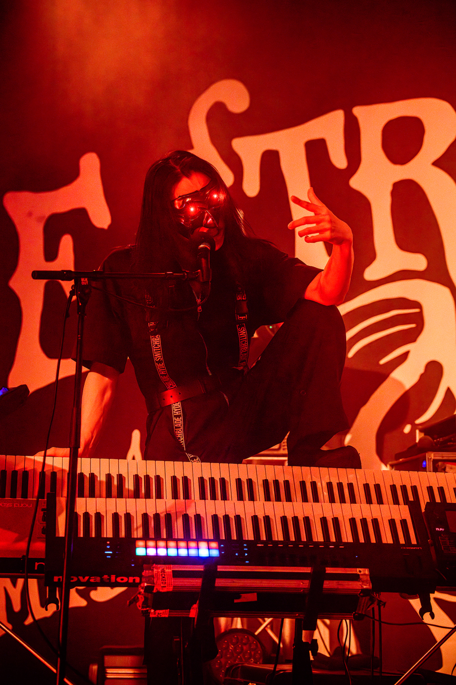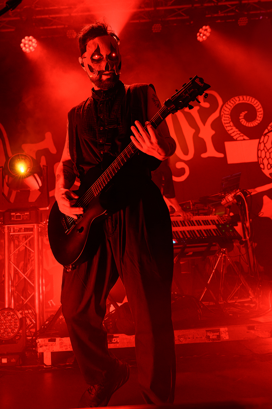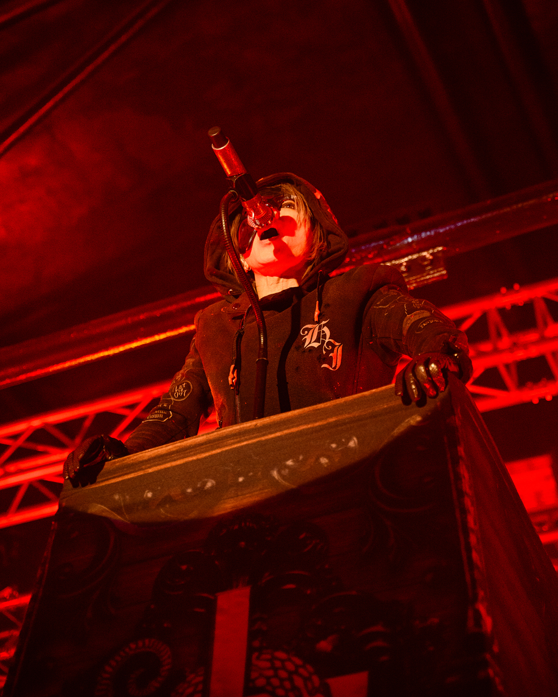 Unheimliche, karnevalsartige Musik erfüllte die Halle, lange bevor HYDE überhaupt die Bühne betrat. Die Menge drängte nach vorn, gespannt auf den Moment seiner Ankunft. Schattenhafte Gestalten mit glühenden Augen glitten aus dem Nebel, während eine tiefe, düstere Karnevalsbarkenstimme die Spannung auf den Höhepunkt trieb. Als die Stimme schließlich „Welcome to the world of HYDE [INSIDE]“ verkündete, war klar: Die Show würde etwas Besonderes werden.