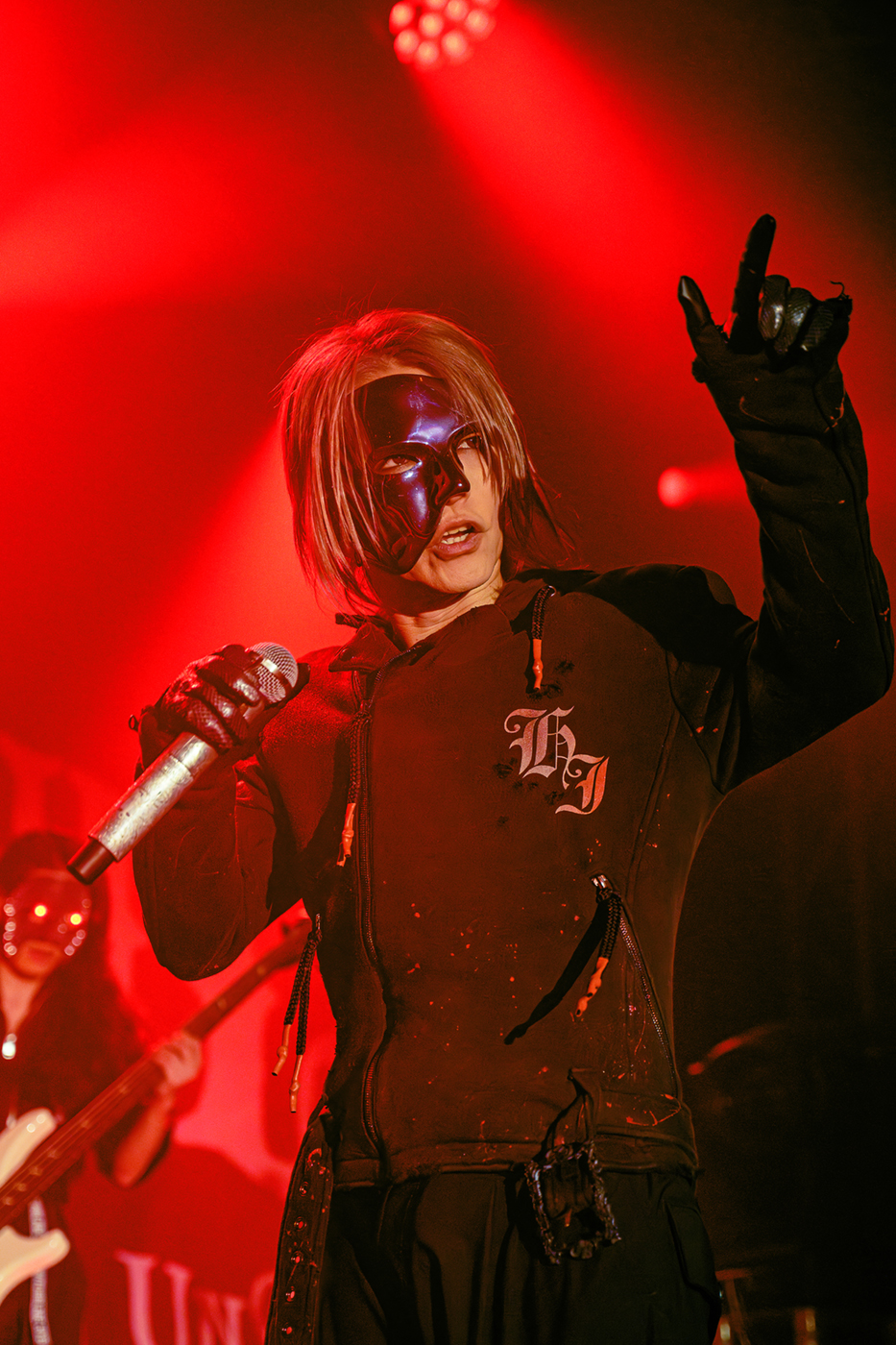Mit dem ersten Lichtstrahl, der die Bühne durchbrach, betrat HYDE die Szenerie. Auf seinem hohen Podest mitten auf der Bühne, mit einer Maske die aus dem Phantom der Oper stammen könnte, eröffnet er die Show. Sein Erscheinungsbild – zugleich mystisch, düster und königlich – rief genau jene Atmosphäre hervor, für die er weltweit verehrt wird. Die Fans reagierten mit einer Mischung aus Schock, Freude und purer Euphorie. In Sekundenschnelle verwandelte sich das Publikum in eine pulsierende Masse aus Stimmen, Händen und Emotionen.