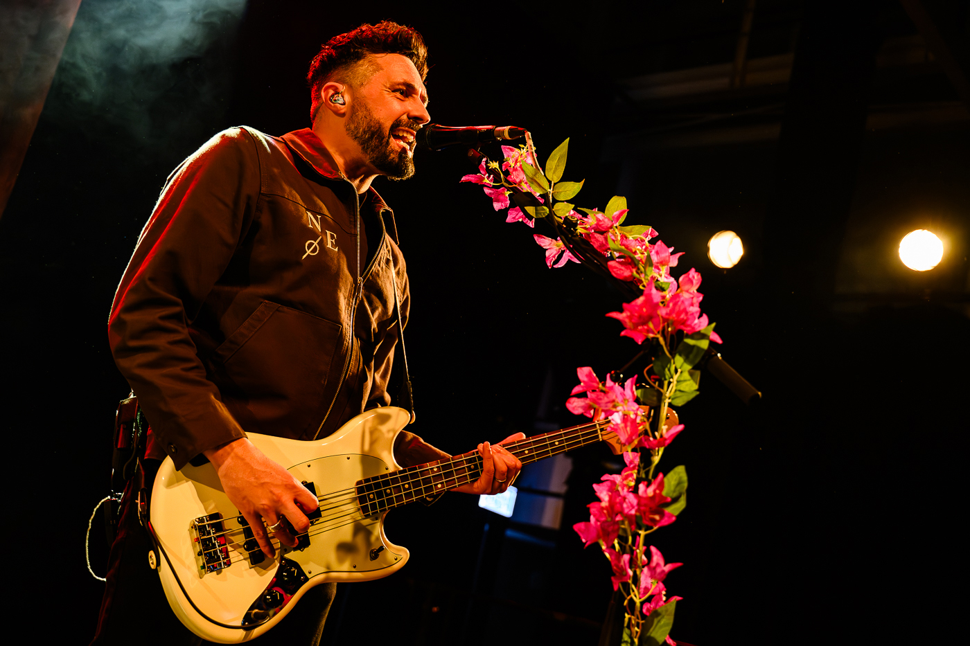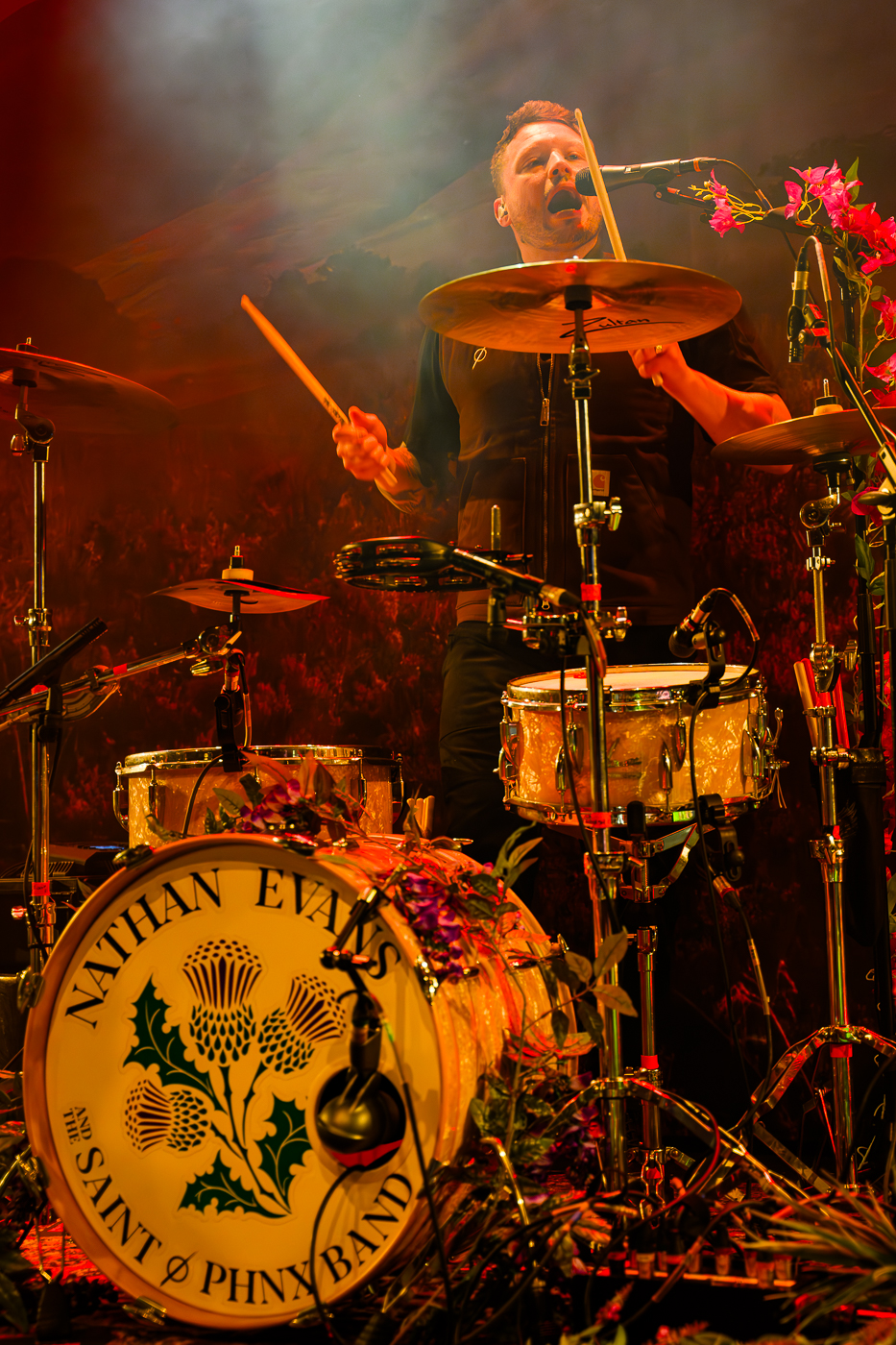 Wenn man das blumenverzierte Bühnenbild an diesem Abend betrachtete wurde einem sofort klar hier sollte ein Wohlfühl-Atmo geschaffen werden. Mit ein wenig Light-Show und extrem gut gelaunten Musikern wurde daraus, direkt beim ersten Song, eine lebensfrohe Einheit aus Band und Publikum. Die kreative Zusammenarbeit die in dem gemeinsamen Album „Angels‘ Share“ endete, wurde an diesem Abend natürlich ausgiebig präsentiert. Nathan übernahm Gesang und Akustikgitarre, während die Jukes-Brüder Percussion (stehend) und Bassgitarre spielten. Erweitert wurde das „Trio“ um den Geigenspieler John Cargill, der dem Sound den letzten Pfiff gab.