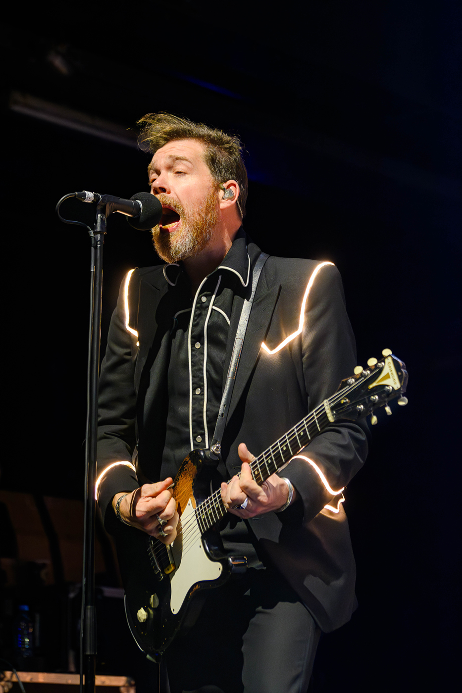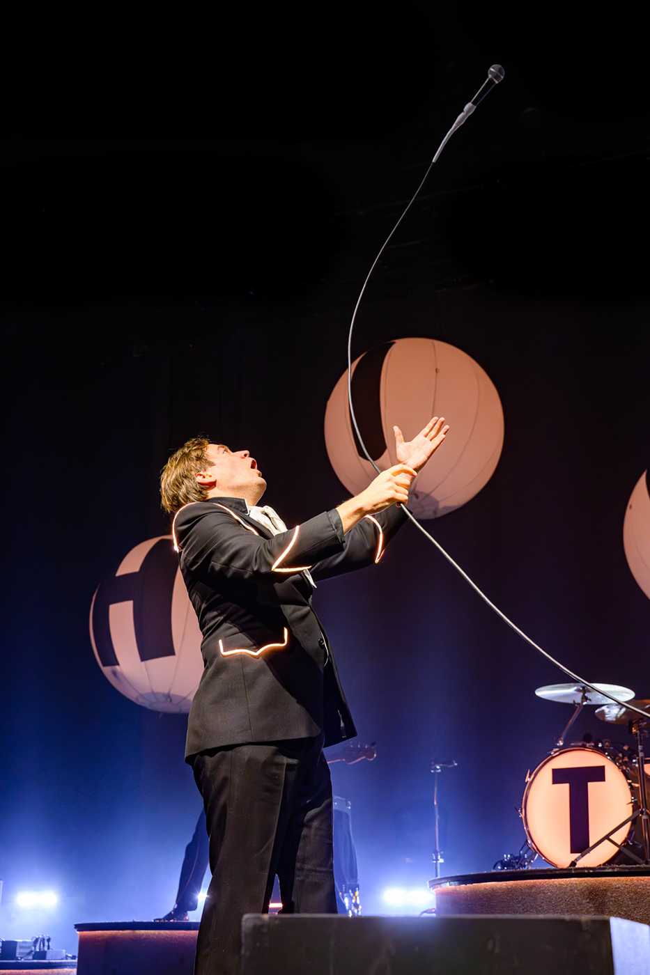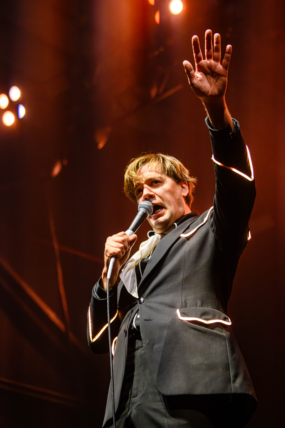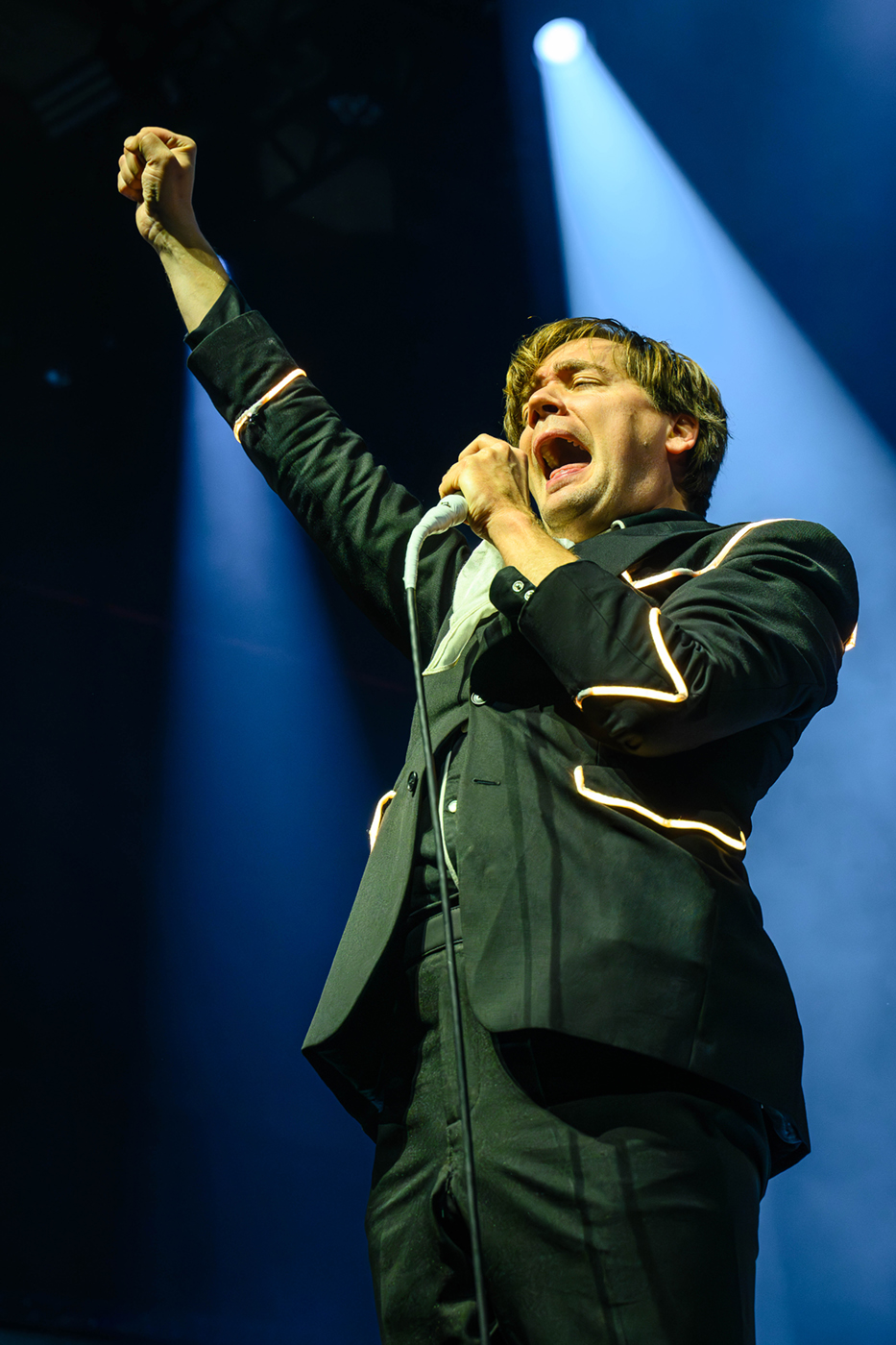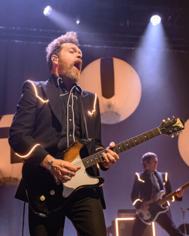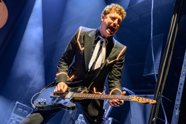 In ihren charakteristischen schwarz-weißen Anzügen diesmal mit LED-Streifen, dafür ohne Blitze, powerten The Hives ohne Pause. Howlin‘ Pelle Almqvist – übernahm sofort das Kommando im Palladium. „Ihr erlebt gerade die Hives auf ihrem Höhepunkt.“ Nach einer 11 jährigen Bühnen-Pause und mit zwei neuen Klassiker-Alben im Gepäck wirkten The Hives wie ein Phoenix aus der Asche.